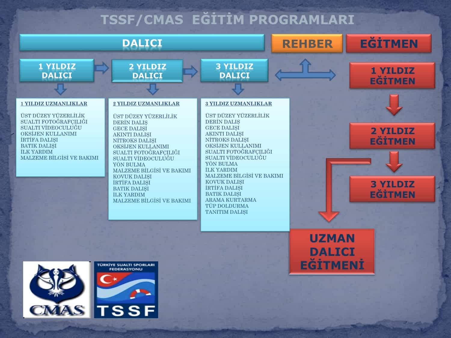 CMAS 1 YILDIZ DALICI EĞİTİMİ , Teorik eğitimler Dalıcının dalış ile ilgili teorik bilgi kazanmasını sağlar. Videolar ve eğitim kitapçığı eşliğinde gerçekleşir. Teorik dersler ... Devamı